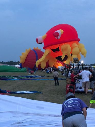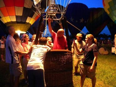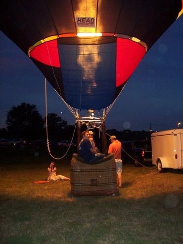A balloon tether in the evening is classified as a balloon glow. It offers an additional element of excitement as the balloon lights up like a giant light bulb making it the ideal backdrop for your event. Tethering a hot air balloon requires an area of 100 ft. x 100 ft. free of obstructions and power lines. Our balloon vehicles must be able to access the designated area. A balloon tether is an excellent way to bring exposure to your business. Imagine having your name on a seven story billboard in your parking lot at a grand opening or special event. Call us 662-299-1780 to find out how we can help take your business to a new "height" and help you "rise" above the competition.